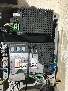 Cuadro de maniobras. Sólo una unidad, pero si nuestra puerta de garaje batiente o cancela es de dos hojas, el cuadro de maniobras deberá estar preparado para cablear dos automatismos para cancelas.